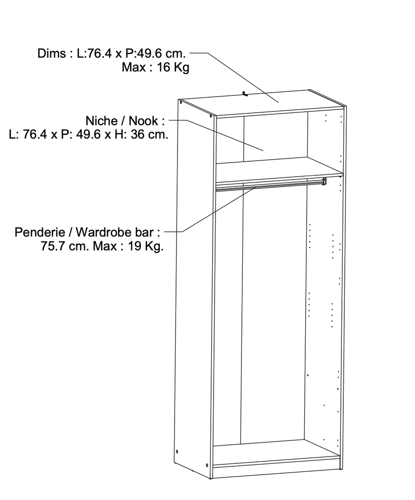 Kích Thước: Cao 203 Ngang 79 Rộng 51 (cm)