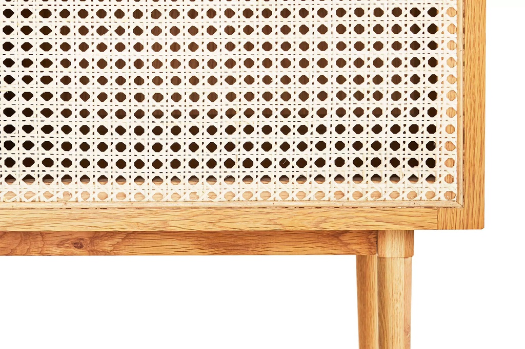 Chất liệu: Gỗ Sồi (Oak)_12% + Gỗ Cao Su Veneer Sồi_88% + Mây Nhựa Mắt Cáo