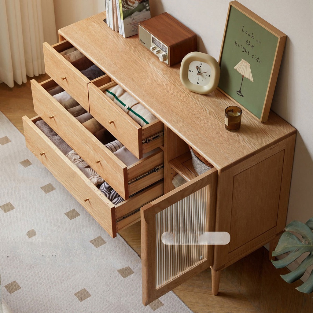 Chất liệu: Kính 5li Sọc Mài + Gỗ Sồi (Oak)_44% + Gỗ Cao Su Veneer Sồi_56%