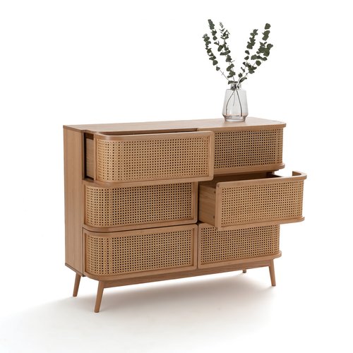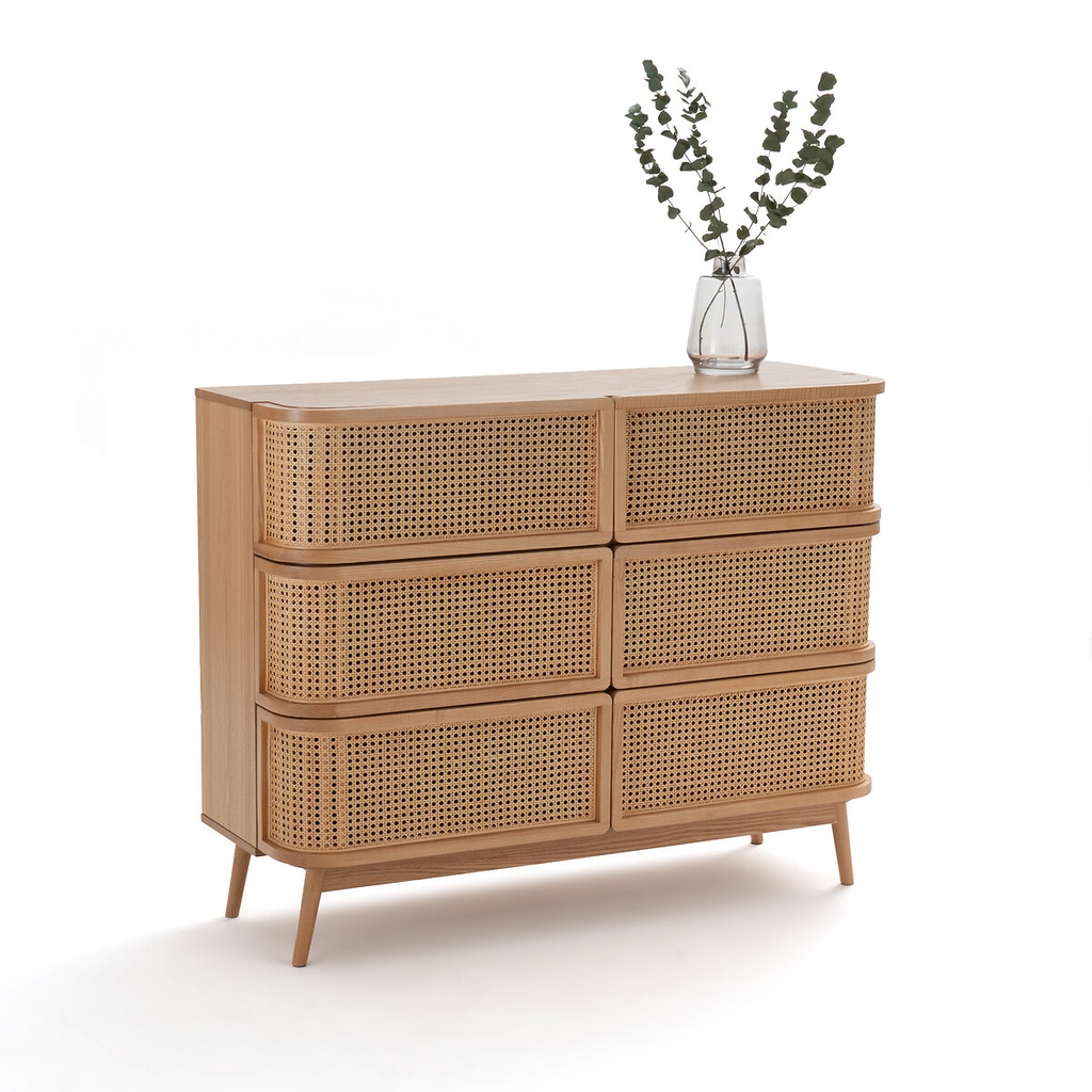 Tủ 6 Ngăn Kéo Gỗ Sồi Kết Hợp Mây Dài 120 Sâu 42 Cao 95 (cm)