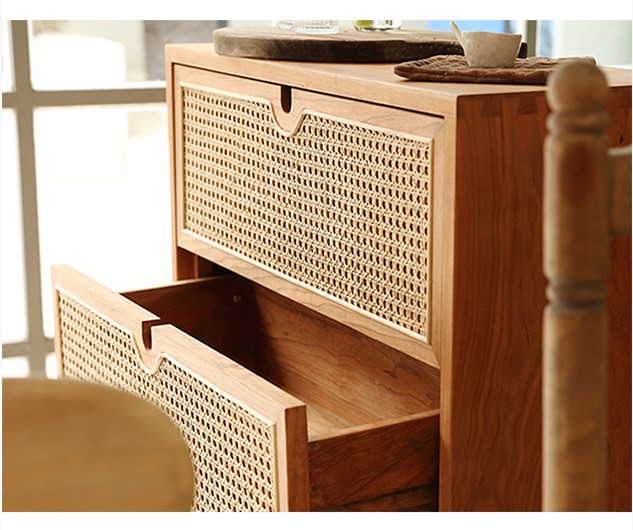 Tủ Quần Áo Gỗ Sồi Kết Hợp Mây