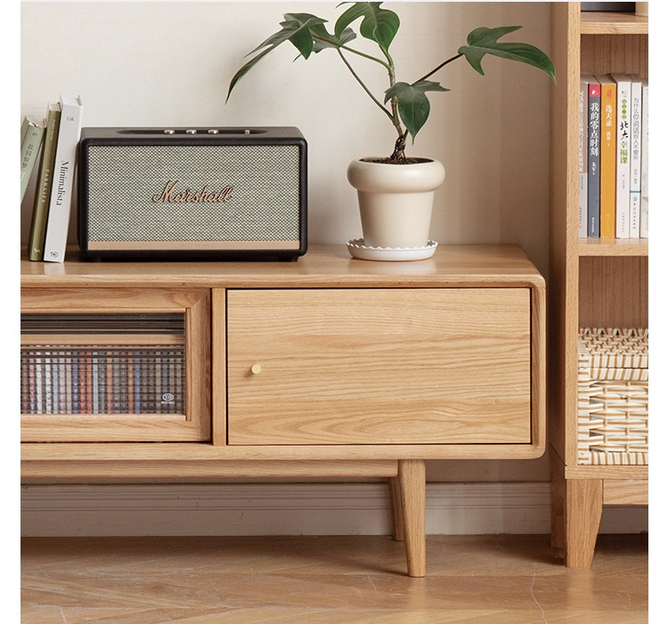 Tủ Tivi Gỗ Sồi Kết Hợp Kính